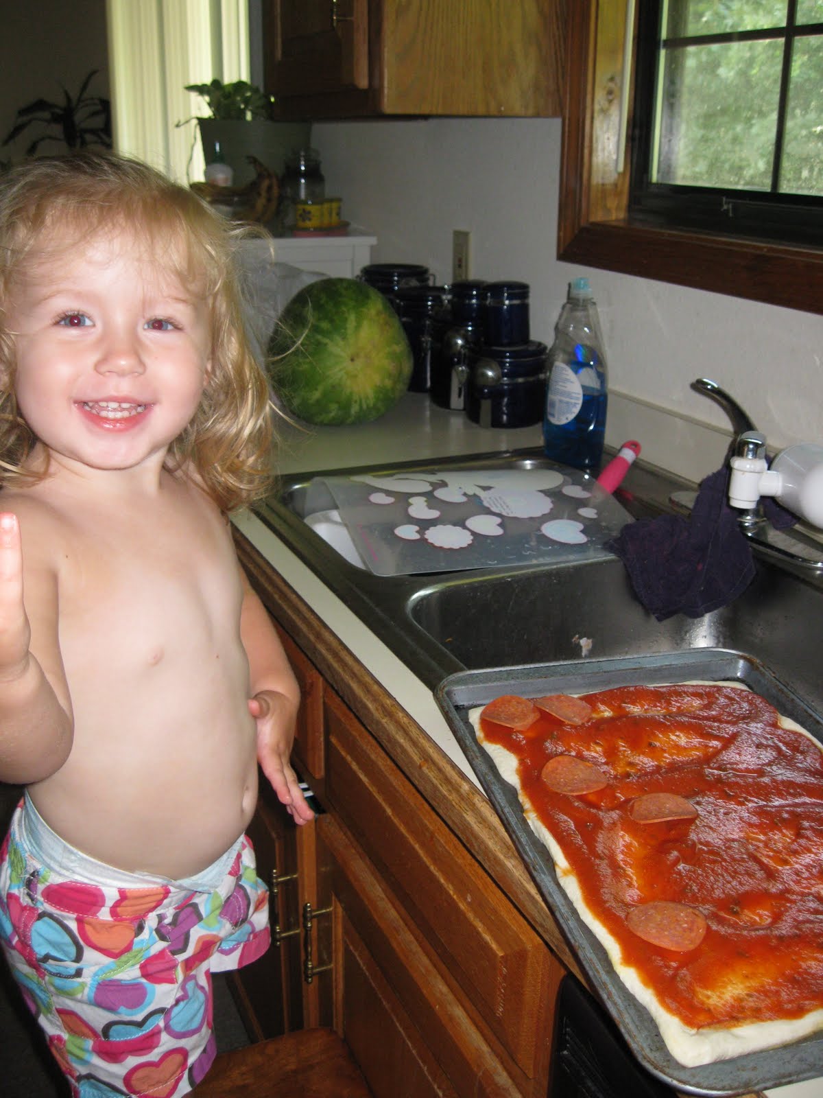 S is for "simming" aka swimming. Simming is one of Kerington's favorite pastimes right now. She recognizes the pool when we pull in. She loves the water, running around through the sprinklers, and has even gone down the kiddie water slide a couple of times.